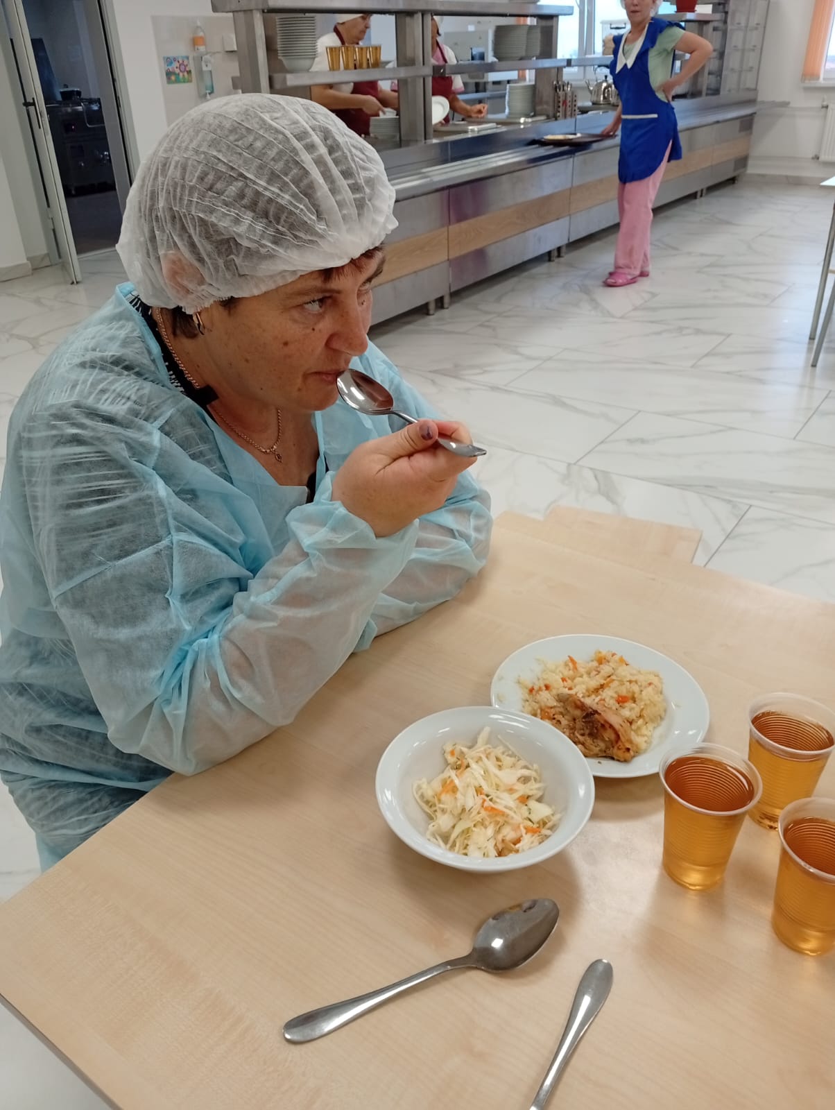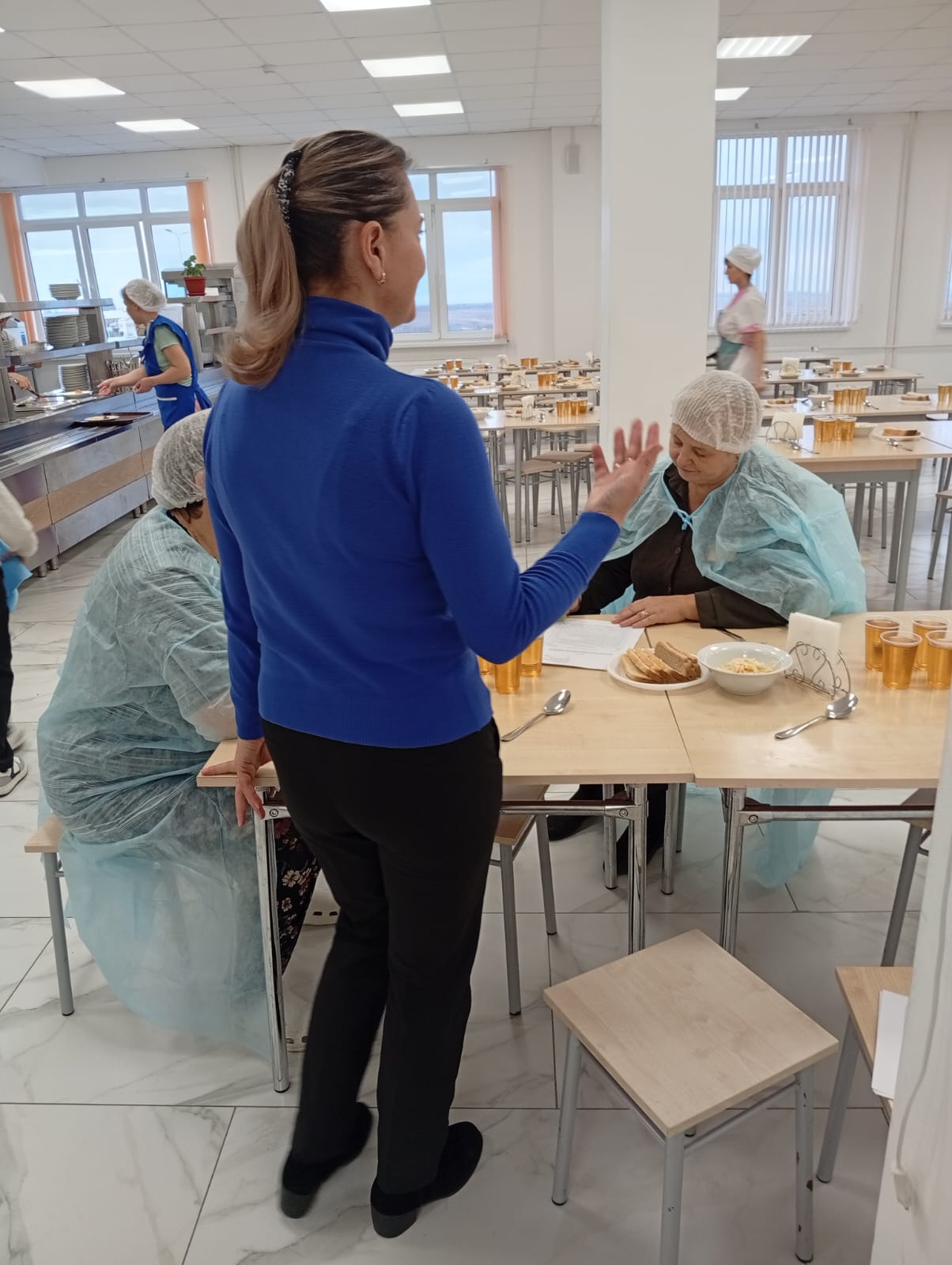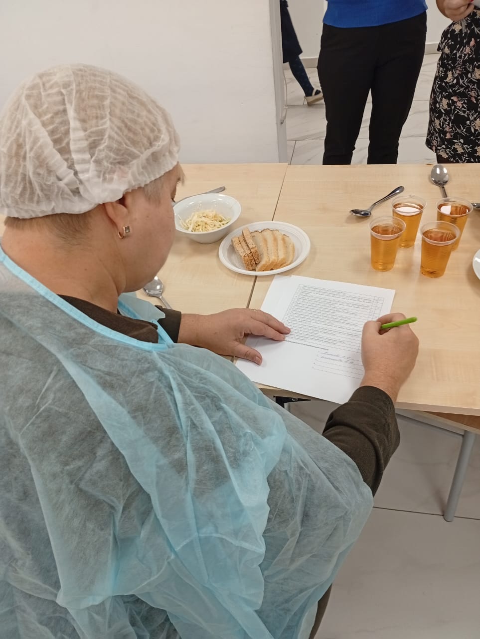 • у сотрудников отметили наличие и чистое состояние санитарной одежды у сотрудников, осуществляющих раздачу готовых блюд;