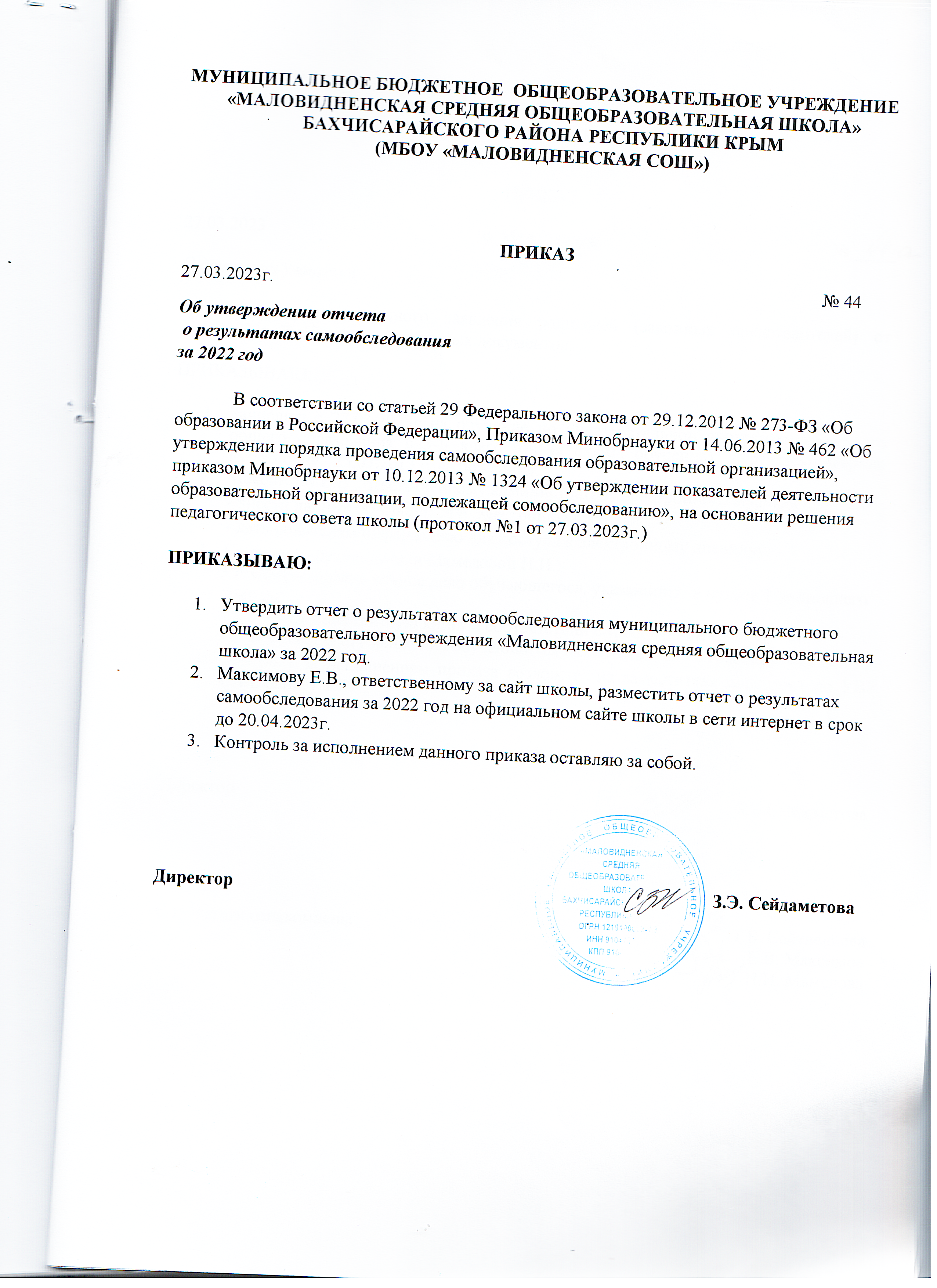 Приказ №44 от27.03.2023 Об утверждении отчета о результатах самообследовании за 2022 год.png